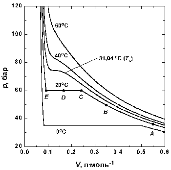 Рис.1.4 Изотермы Ван-дер-Ваальса для СО2