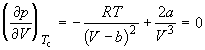 По мере повышения температуры все три корня сближаются, и при критической температуре Tc все три корня становятся равными. В критической точке изотерма Ван-дер-Ваальса имеет точку перегиба