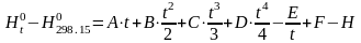 Для расчета количества энергии, введенной при нагреве исходных компонентов до температуры проведения процесса (1100К) и остывания продуктов реакции до температуры 298,15К воспользуемся «Shomate Equation» [5]: