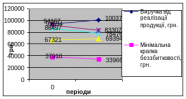 Класична крапка беззбитковості для данного підприємства в базовому році дорівнює 67321грн. У періоді 0 запас безпеки складав 29%. Підприємство “ Строймаш ” здатне витримати зниження обсягів виробництва і реалізації продукції на 29% та не понести при цьому збитків. У періоді t крапка беззбитковості збільшилася, і збільшився запас безпеки – 36%. Ця тенденція є позитивною.