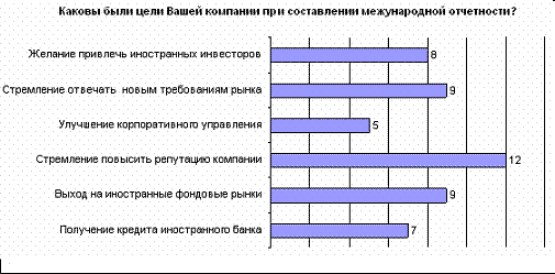 Часто основным мотивом применения МСФО российскими компаниями называют выход на международные биржи или иное привлечение капитала на западных рынках. Однако при более глубоком анализе становится очевидным, что применение МСФО – это отражение перехода российской экономики на качественно новую ступень развития, на которой важнейшими ценностями становятся благоприятный инвестиционный климат, открытость деятельности компаний, подотчетность менеджмента акционерам, высокие стандарты корпоративного поведения. Результаты опроса , проведенного в России среди 22 крупных компаний ("Норильский никель", "АвтоВАЗ", "Калина", "Северсталь", "Балтика" и др.), показывают, какие факторы влияли на решения компаний, составляющих отчетность в соответствии с МСФО или ГААП США.