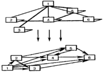 Всякая социальная организация обладает своим внутренним движением и внутренними тенденциями развития, определяемыми в общем необходимостью для нее быть подготовленной к реализации внешних требований. Наиболее рациональной, на наш взгляд, представляется система организации информационных потоков, представленная на рисунке 7, где показана возможность передачи информации не только через руководящий орган, но и непосредственно между подразделениями.