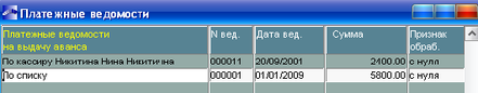 В списке платежных ведомостей появляется новая ведомость, [Приложение 17]. Нажав клавишу Enter и кнопку Ввод, получаем готовую к печати платежную ведомость на выдачу аванса.