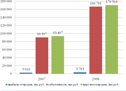 Рис 3.1. Показатели, характеризующие деятельность предприятия за 2007-2008 гг.