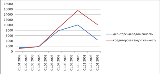 Как видно из графика, размеры дебиторской и кредиторской задолженности практически идентичны.