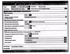 • порядок погашения стоимости в бухгалтерском учете и порядок включения стоимости в состав расходов в налоговом учете по налогу на прибыль (устанавливается соответственно на закладках "Бухгалтерский учет" и "Налоговый учет");