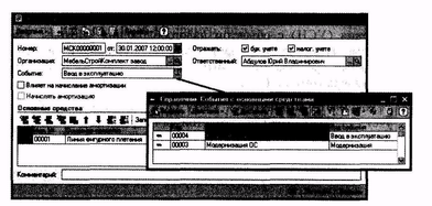 Помимо этих параметров, в момент принятия основного средства к учету могут быть установлены и другие параметры, например, параметры начисления амортизации или износа, способы отражения затрат по амортизации (погашению стоимости), материально-ответственное лицо, подразделение и другие. Такие параметры могут меняться в течение периода учета основного средства.
