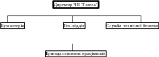 Для організації діяльності підприємства велике значення має його організаційна структура. Під організаційною структурою підприємства розуміють його організаційну побудову, що відображає сукупність взаємозв'язків різних підрозділів підлеглих досягненню певної мети - збільшенню виробництва продукції, наданню якісних послуг. На малюнку 1.1. представлена організаційна структура ЧП "Газель".