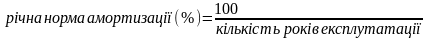 річна сума амортизації розраховується множенням первинної вартості на дату початку нарахування амортизації на річну норму амортизації; розраховується за формулою 1.2: