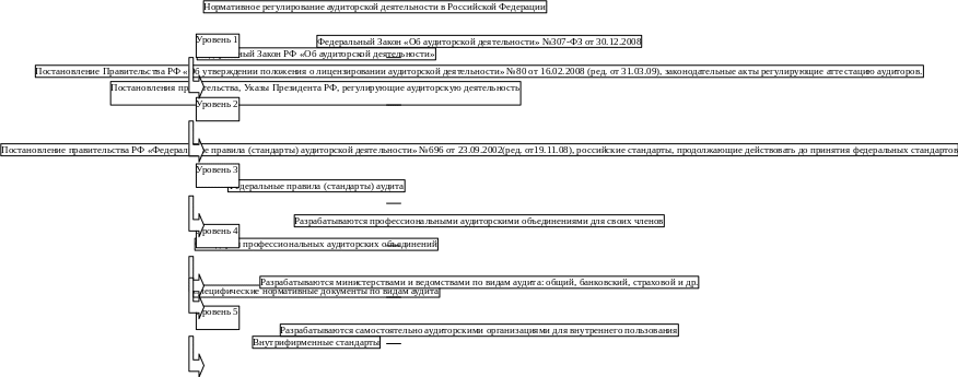 Существует пять уровней нормативного регулирования аудиторской деятельности в РФ: