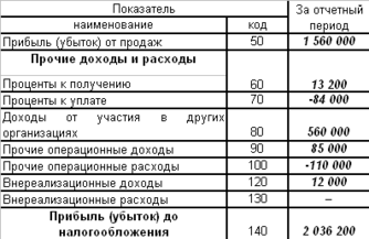 Прибыль (убыток) до налогообложения = Прибыль (убыток) от продаж + Проценты к получению - Проценты к уплате + Доходы от участия в других организациях + Прочие операционные доходы - Прочие операционные расходы + Внереализационные доходы - Внереализационные расходы + Чрезвычайные доходы - Чрезвычайные расходы.