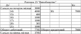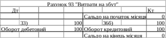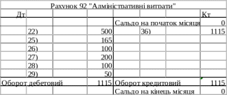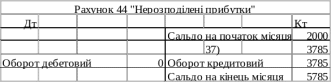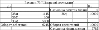 Згідно кореспонденцій рахунків у Таблиці 4 розносимо господарські операції по бухгалтерських рахунках; підраховуємо обороти за період та залишки по рахунках на кінець періоду. Для відображення інформаціі про собівартість реалізованої продукції відкриваються збірно-нерозподільчі рахунки (92, 93), суми з яких в кінці періоду списуються за кредитом на рахунок 79 «Фінансові результати». Для відображення результатів діяльності підприємства використовується рахунок 79 «Фінансові результати», сума прибутку в кінці періоду списується в кредит рахунку 44 «Нерозподілений прибуток». Рахунки 92, 93, 79 не будуть відображені в Балансі.