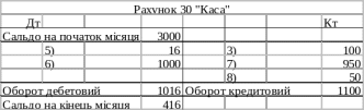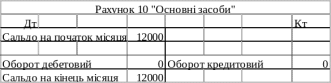 | Шифр рахунку | Назва рахунку | Сальдо початкове | Оборот | Сальдо кінцеве | |||