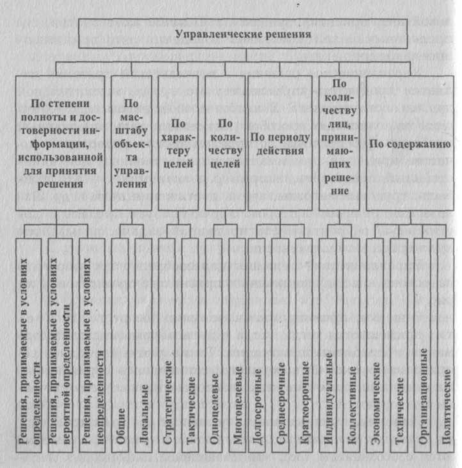Управленческие решения целесообразно группировать на основе классификационных признаков, приведенных на рис.1.