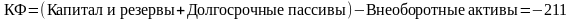 | Функционирующий капитал (КФ) | – 443 | – 211 |