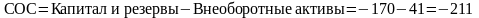 | Наличие собственных оборотных средств (СОС) | – 443 | – 211 |