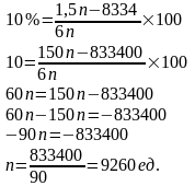 По полной себестоимости 30834 : 5 000 * 10000 = 61 666 долл.США. Полная себестоимость = Рп + Н = (67 500 + 25 000) : 30000 * 20000 =