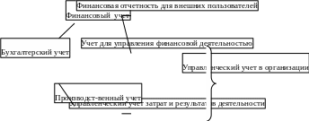 Из приведенной схемы [6] видно, что управленческий учет состоит как бы из двух компонентов: производственного учета, предназначенного для внутреннего (внутризаводского, как говорили раньше) управления производством и сбытом продукции, и той части финансового учета, которая служит для управления финансовой деятельностью непосредственно в организации. Это не означает, что при организации управленческого учета, создании его системы нужно обязательно объединить обе эти функции. Они могут существовать и обособленно: производственная бухгалтерия ведет учет затрат и результатов производства и сбыта, а финансовая - кроме ведения бухгалтерского учета, составления баланса и других форм отчетности, участвует в управлении финансовыми операциями и потоками платежных средств и соответствующей деятельностью. В небольших организациях функции управленческой и финансовой бухгалтерии следует объединить в единой службе.