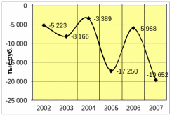 | 2002 год | 2003 год | 2004 год | 2005 год | 2006 год | 2007 год | в тыс.руб. | в % | ||