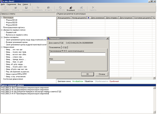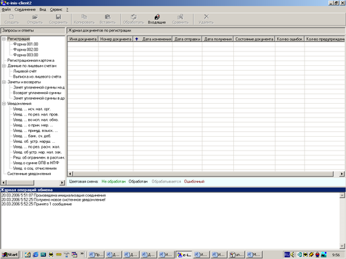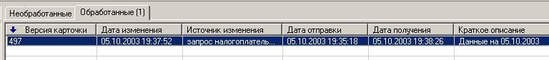 Через несколько (6-25) минут, при нормальной работе серверов в НК, Ваш запрос будет обработан и помещён в очередь. Выбирая пункт «Проверить наличие входящих сообщений» меню «Соединение», либо кнопку «Входящие» панели инструментов – Вы проверяете наличие входящих сообщений с сервера, и если в этот момент в очереди будет присутствовать какое-либо сообщение - оно будет получено клиентским приложением. Приём обработанного запроса сопровождается звуковым сигналом, после чего он появлятся на вкладке “Обработанные” соответствующего режима (Рисунок 9)