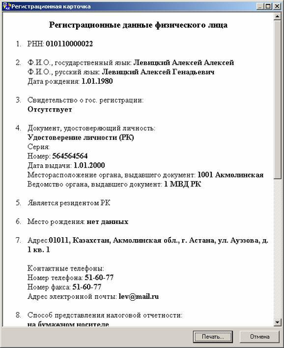Рисунок 10. Просмотр регистрационных данных налогоплательщика