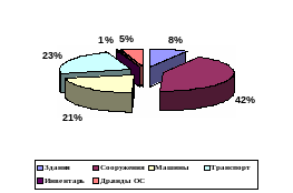 Очень незначительный удельный вес имеет производственный и хозяйственный инвентарь – всего 1 % и 0.97 % на начало и конец 2007 года соответственно. Для наглядности структура основных фондов по состоянию на 1.01.2007 г. показана на рис.4.1.