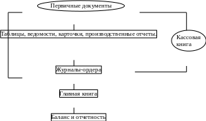 Итоговые данные журналов-ордеров в конце месяца заносят в Главную книгу, по данным которой составляется бухгалтерский баланс.