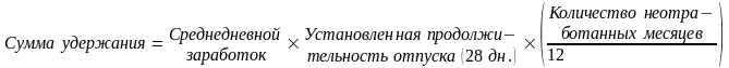 2.2.4 Удержание за неотработанные дни оплаченного отпуска