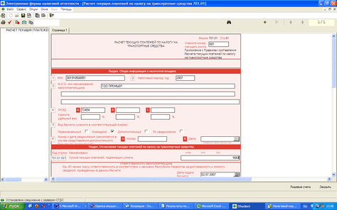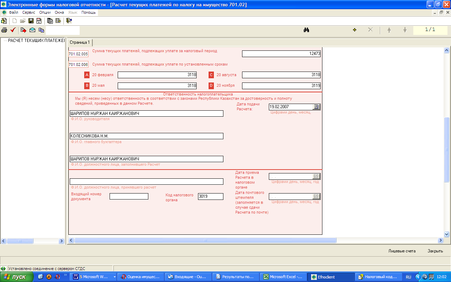 Расчеты текущих платежей ТОО Премьер по налогам на имущество, транспорт и землю