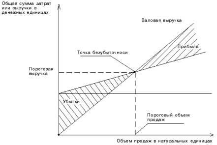 Рисунок 1. Определение точки безубыточности (порога рентабельности)