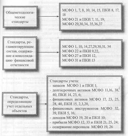 3) стандарты, определяющие правила учета отдельных объектов. Данная группа ввиду многочисленности учитываемых объектов может быть подразделена на дополнительные подгруппы.