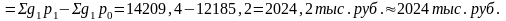 б) за счет цен увеличилась на 2024 тыс. руб.