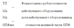 1 этап: в формулу расчета фондоотдачи вводится стоимость активной части (ОПФакт):