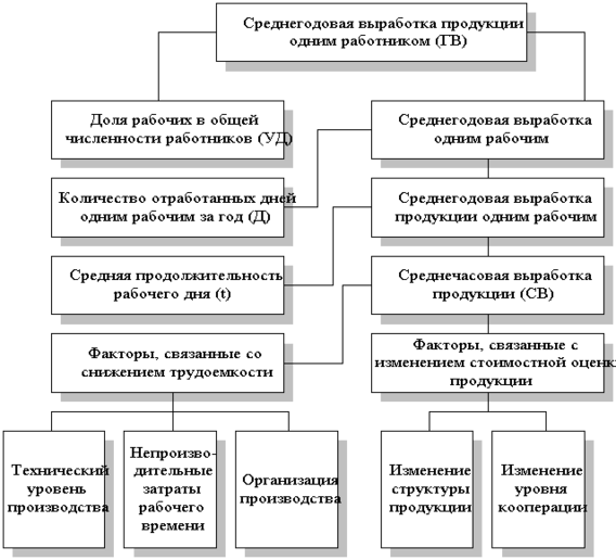Рис. 2. Взаимосвязь факторов, определяющих среднегодовую выработку продукции работника предприятия