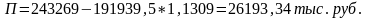 Из расчетов видно, что за истекший год значительно увеличилась стоимость основных фондов предприятия: с 191939,5 до 243269 тыс. рублей, или на 51329,5 тыс. рублей.