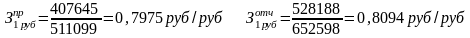 | Затраты на 1 рубль проданной продукции, р./р. | | 0,797585204 | 0,809361966 | 0,011776762 |