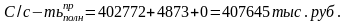 | Полная себестоимость проданной продукции, т.р. | | 407645 | 528188 | 120543 |