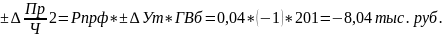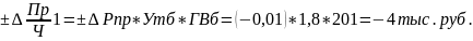 ±∆ГВ4 = УДф *Дф * Тсмф * ±∆ЧВ = 0,85 * 214 * 8,7 * 0,02 = 31,65 т.руб.