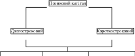 Позиковий капітал – це кредити банків і фінансових компаній, позики, кредиторська заборгованість, лізинг, комерційні папери тощо. Він поділяється на довгостроковий (більше року) і короткостроковий (до року) (рис. 1.2).