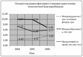 Рис. 2.1. Основні техніко-економічні показники ефективності використання ресурсів СНВТОВ “Васильківське”, 2004 – 2006 рр.