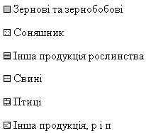 | Інша продукція рослинництва | 8,4 | 1,74 | 6 | 2,7 | 0,77 | 7 | 1,1 | 0,17 | 6 | ||