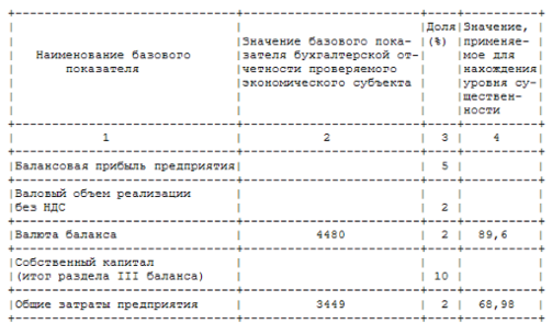 Для нахождения уровня существенности можно использовать следующую таблицу: