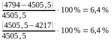 Теперь среднюю величину 4505,5 округляем до 4500 и используем данный количественный показатель для расчета уровня существенности.