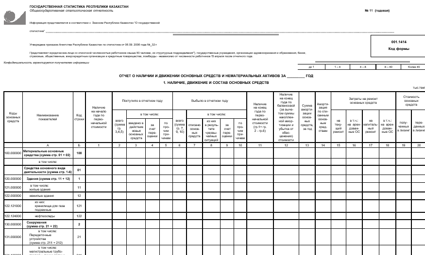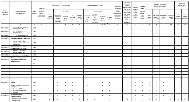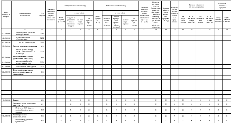 Фрагмент отчета о наличии и движении основных средств и нематериальных активов