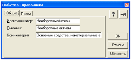 Рис. 3. Окно свойств справочника "Необоротные активы"