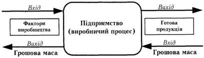 Підприємство можна розглядати як систему, призначену для трансформування факторів виробництва (техніка, сировина і матеріали, жива праця, капітал) у готову продукцію, тому його модель має таку форму (рис. 1).