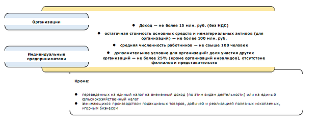 УСНО не вправе применять фирмы, которые перечислены в пункте 3 статьи 346.12 Налогового кодекса. В частности, это компании, в которых доля участия других организаций составляет более 25 процентов, средняя численность работников превышает 100 человек, а остаточная стоимость основных средств и нематериальных активов больше 100 миллионов рублей;