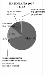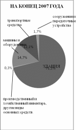 Рассмотрев структуру основных средств за 2007 год, мы видим, что наибольший удельный вес в стоимости основных средств составляет пассивная часть основных средств. Основная доля принадлежит зданиям, машинам и оборудованию, транспортным средствам.