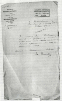 Общегосударственные нормы в делопроизводственной сфере, заложенные в "Общем учреждении министерств", требовали изменений и развития. Отдельные ведомства пытались самостоятельно упростить делопроизводственный процесс. Например, в канцелярии попечителя Московского учебного округа внедряются элементы механизированной обработки документов: их печатают на пишущей машине, пометки о получении, регистрации, направлении на исполнение, об исполнении наносят с помощью механических нумераторов или штампов (Рисунок 6). Но основной смысл рационализации делопроизводства в этом учреждении сводился к расширению полномочий рядовых чиновников, к передаче ряда функций руководства (попечителя) рядовым работникам (инспекторам). Эта мера сразу же ускорила движение документов и привела к сокращению их объема.