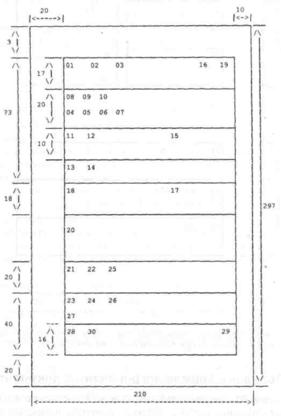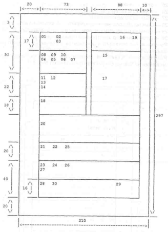 Зоны формуляра-образца документа устанавливают границы расположения определенной номенклатуры реквизитов и при написании обозначаются координатами верхней левой ячейки конструкционной сетки и нижней правой ячейки конструкционной сетки, ограничивающих зону, между которыми ставится знак тире.